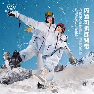 半度闲亲子儿童滑雪服套装 洋气女童加厚保暖户外防水防风分体衣裤