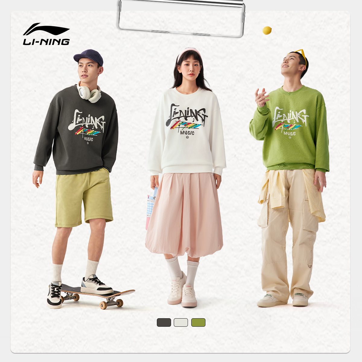 加绒加厚宽松早秋运动上衣男士 李宁卫衣女秋冬新款 情侣圆领套头衫