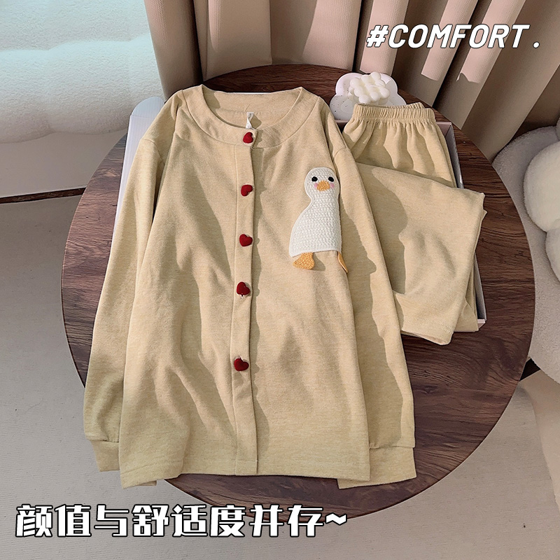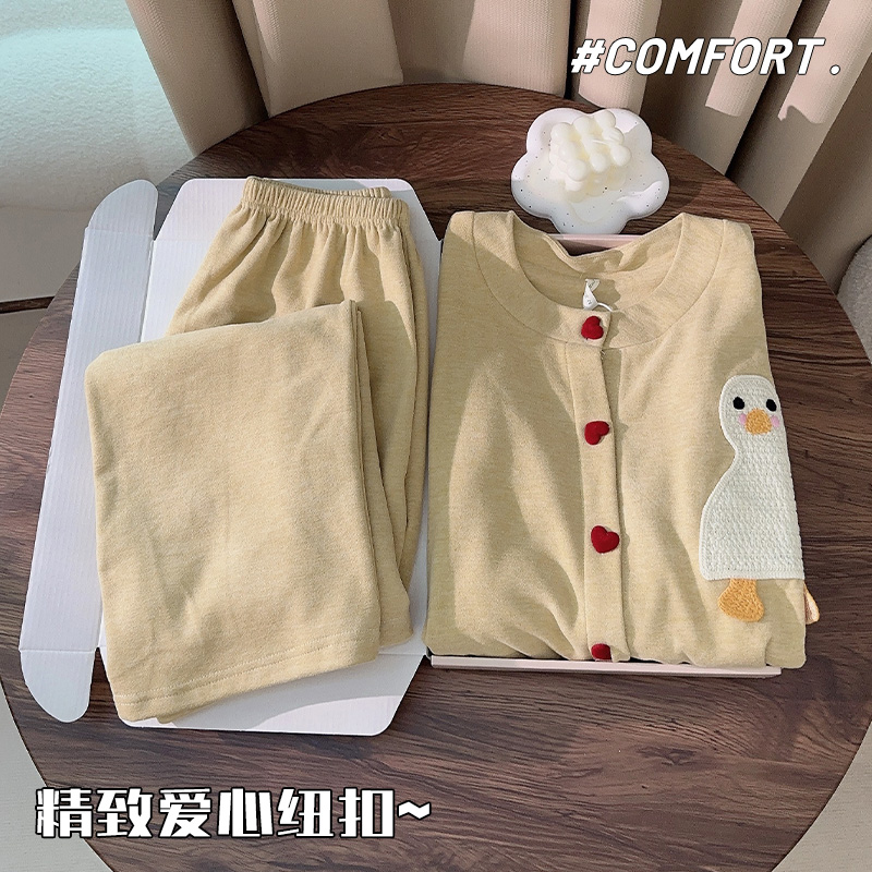 保暖薄绒家居服套装 温柔风卡通爱心开衫 睡衣女可外穿2025秋冬新款