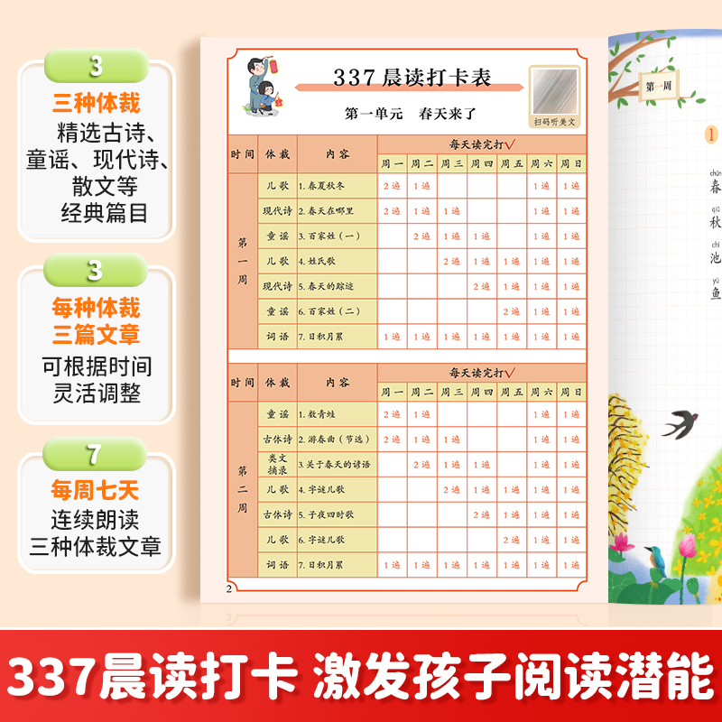 337晨读美文一年级每日晨读资料上册下册晨诵晚读小学语文英语晨读法打卡100篇好词好句好段优美句子积累大全课外阅读 官方旗舰