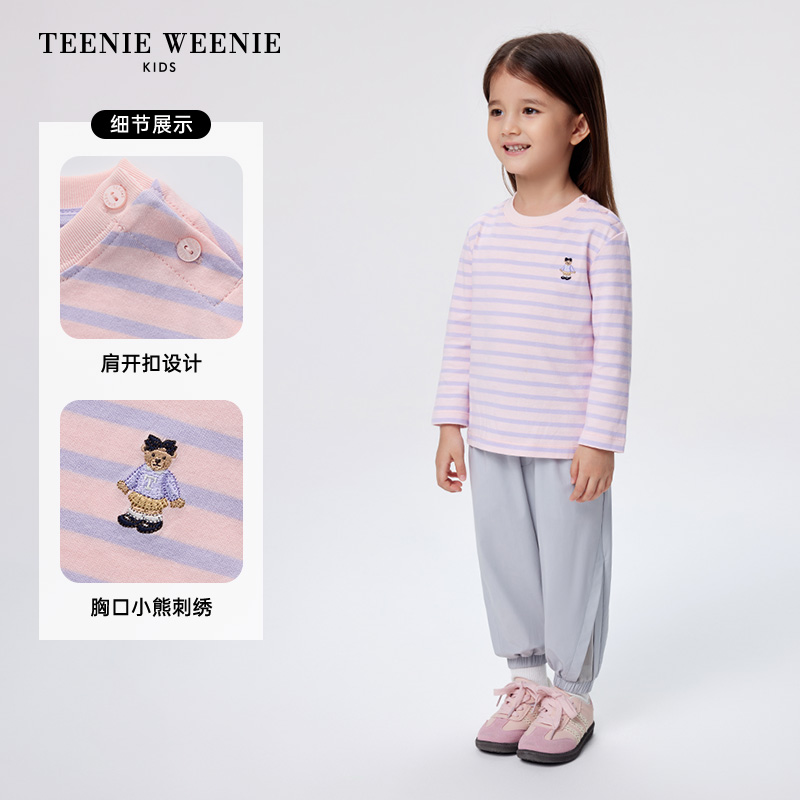 纯棉T恤打底衫 25年男女宝宝肩开扣长袖 Kids小熊童装 TeenieWeenie