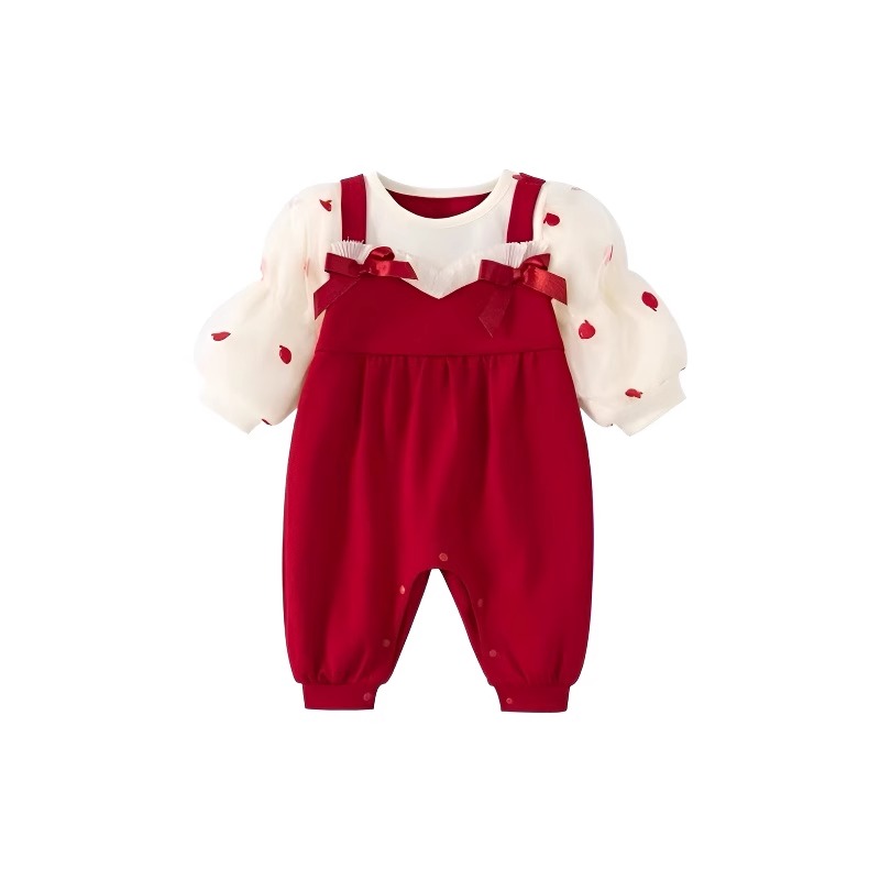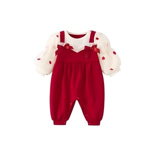 爬爬服女 红色百天周岁满月礼服女宝宝秋季 婴儿连体衣2025新款 秋装