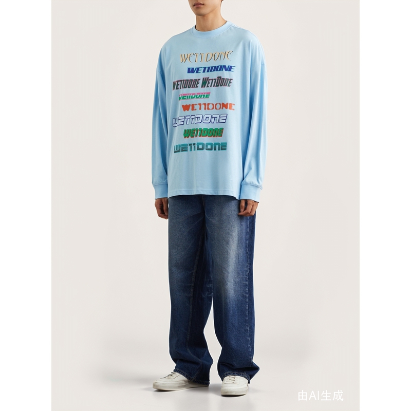 款 经典 we11done 男女同款 T恤 宽松印花棉质长袖 折扣