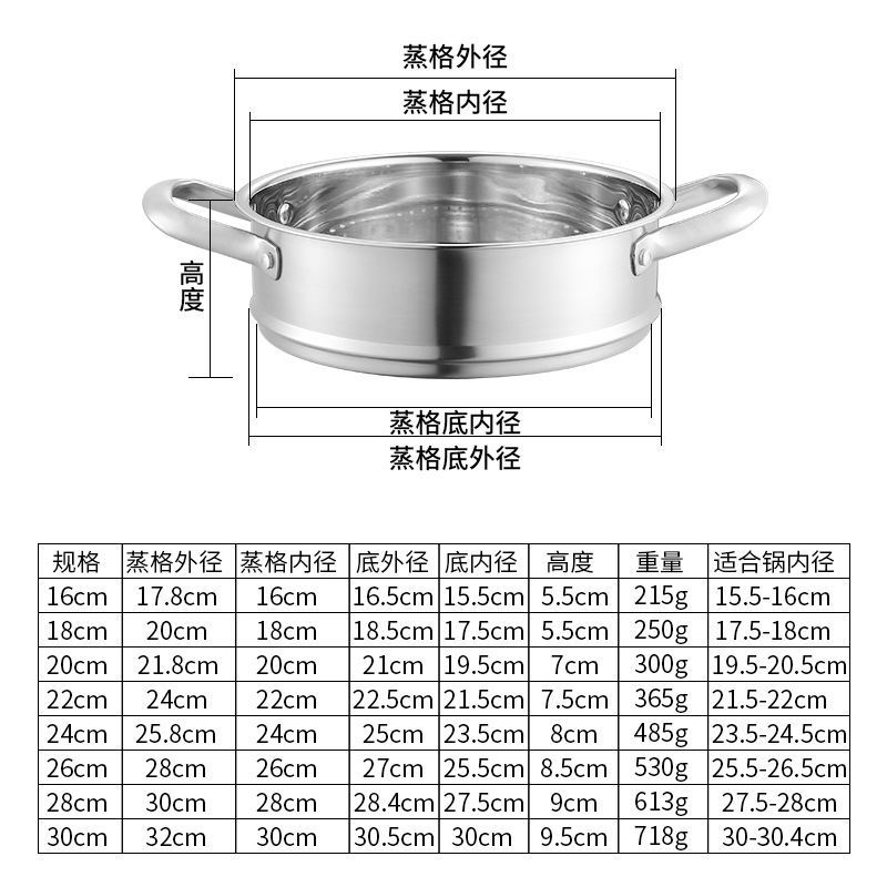 不锈钢蒸笼 辅食锅蒸格蒸包子蒸笼通用蒸屉 加厚加高蒸架