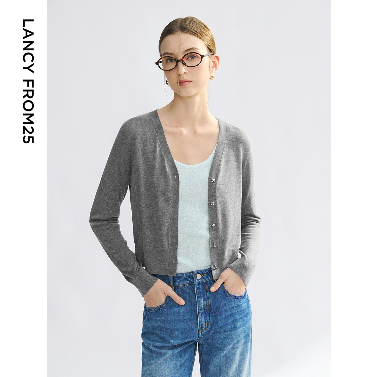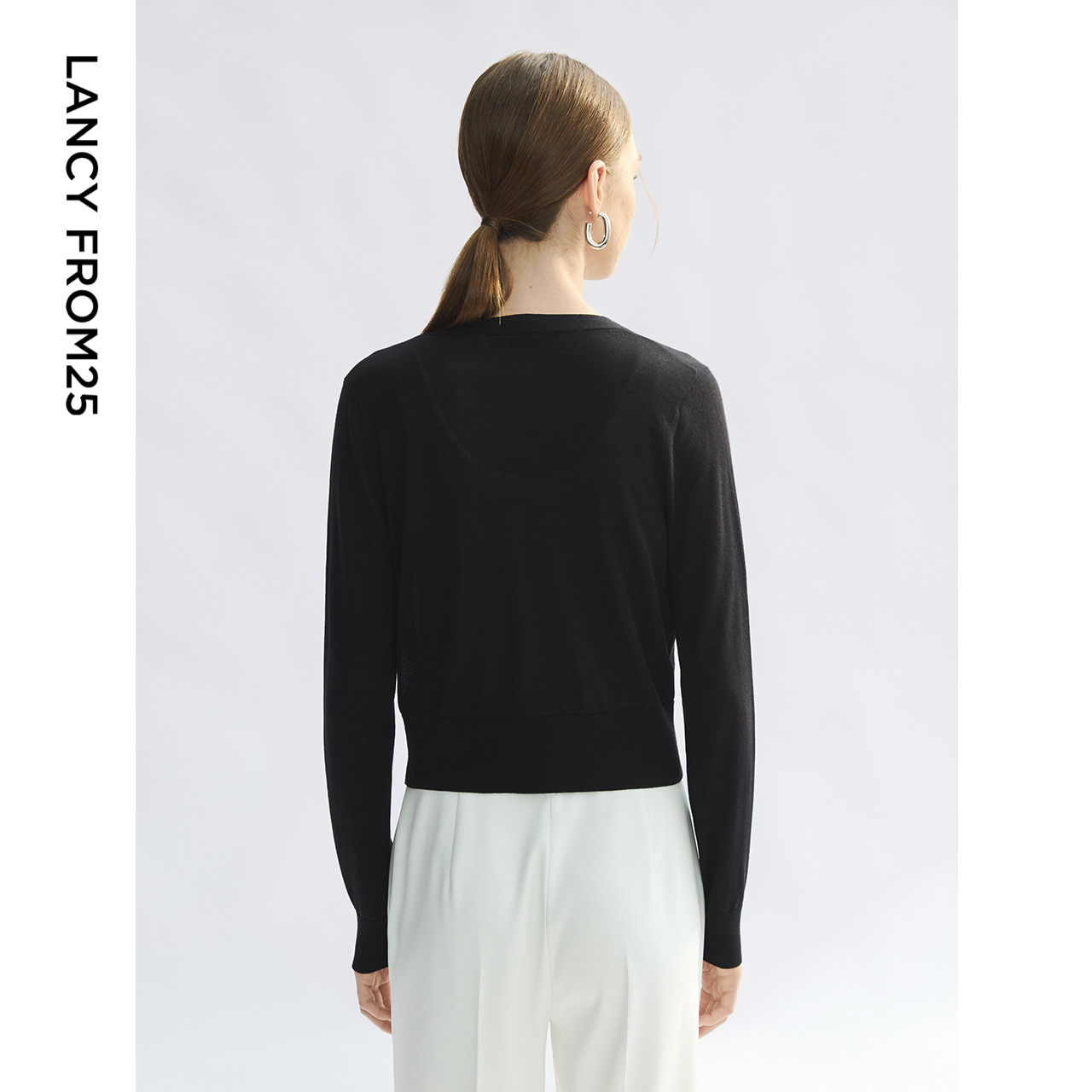 上衣气质高级感黑色毛衣女 开衫 朗姿2025年夏季 淡人莱赛尔毛针织衫