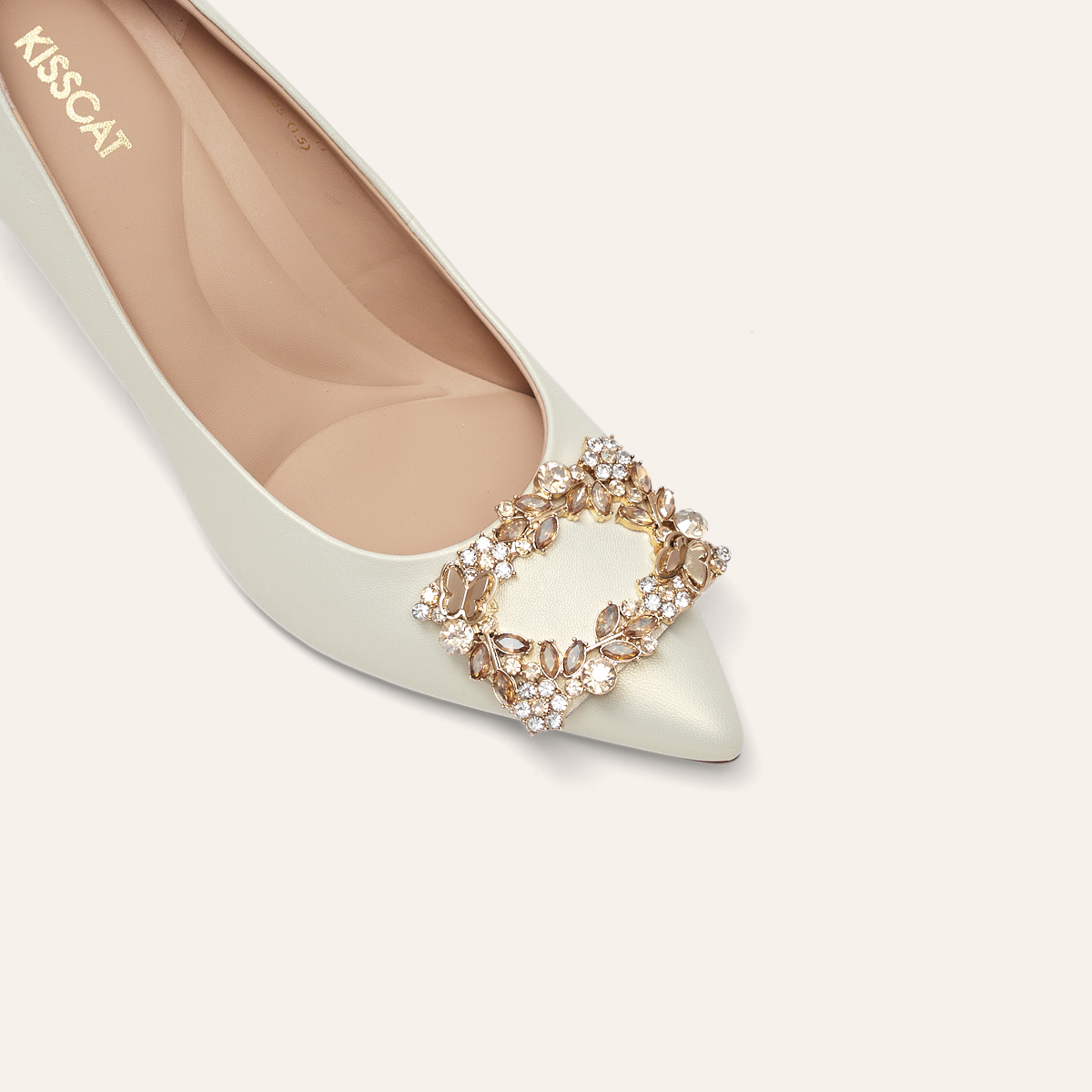 真皮高级浅口单鞋 KISSCAT接吻猫秋季 新娘鞋 婚鞋 女 通勤尖头高跟鞋