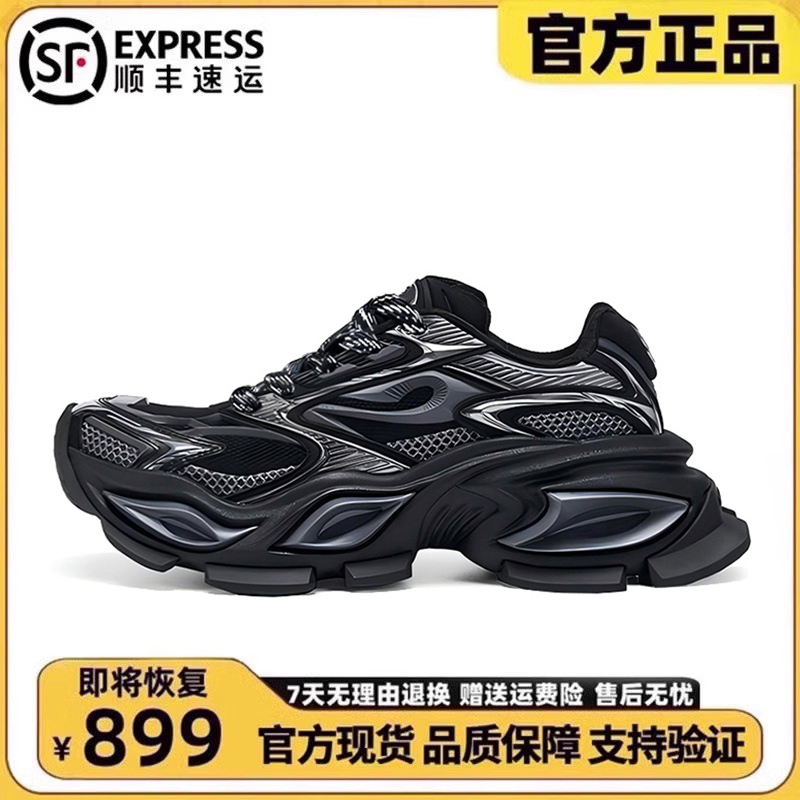 纯黑色老爹鞋 FILA 通勤运动鞋 黑武士厚底增高男士 斐乐硬糖男鞋