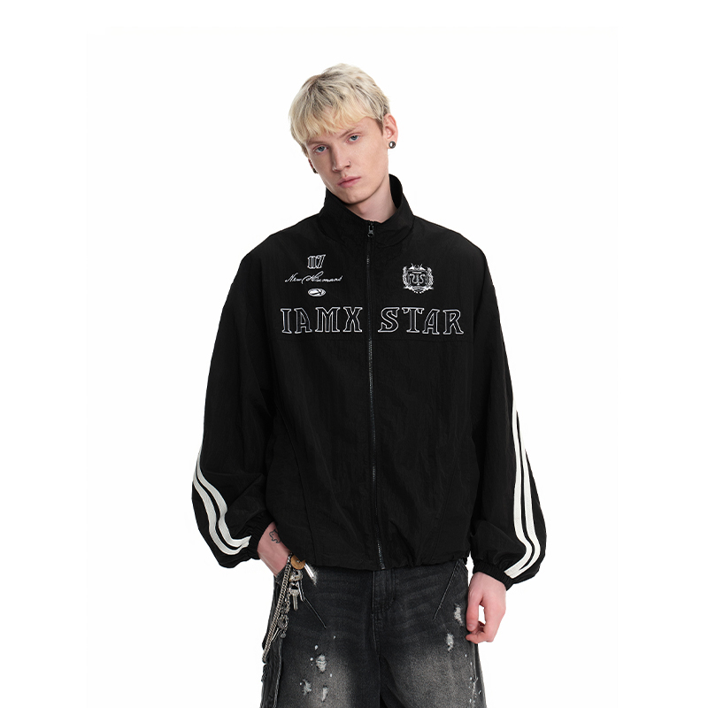 江南先生NewJNXS美式 复古透气立领撞色拼接夹克春秋男女宽松外套