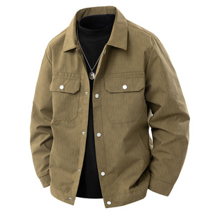 牛仔衣 工装 高级感防褪色原色水洗牛仔外套男宽松大码 翻领夹克新款