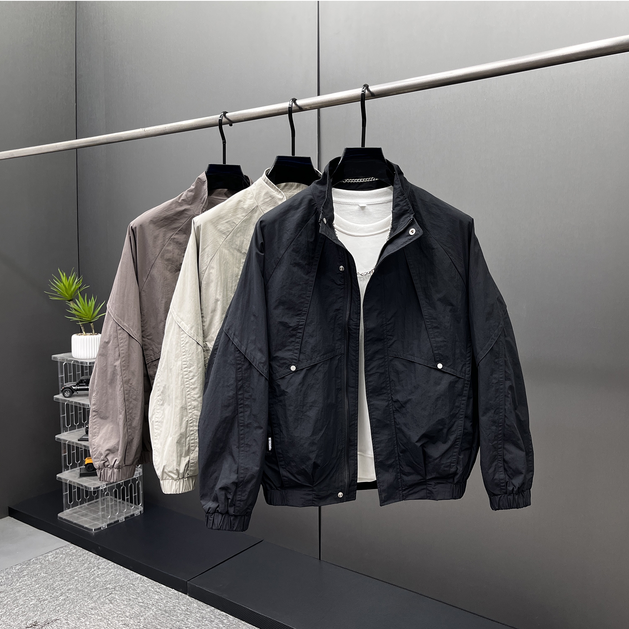 宽松美式 新款 夹克上衣百搭潮廓形 2025春款 潮牌设计感立领外套男士