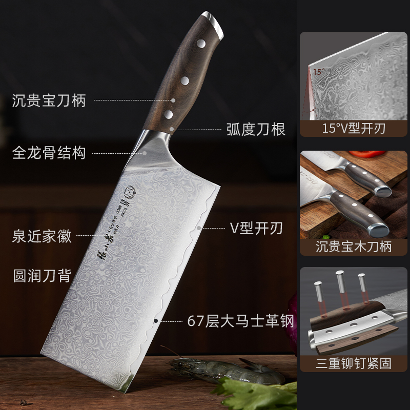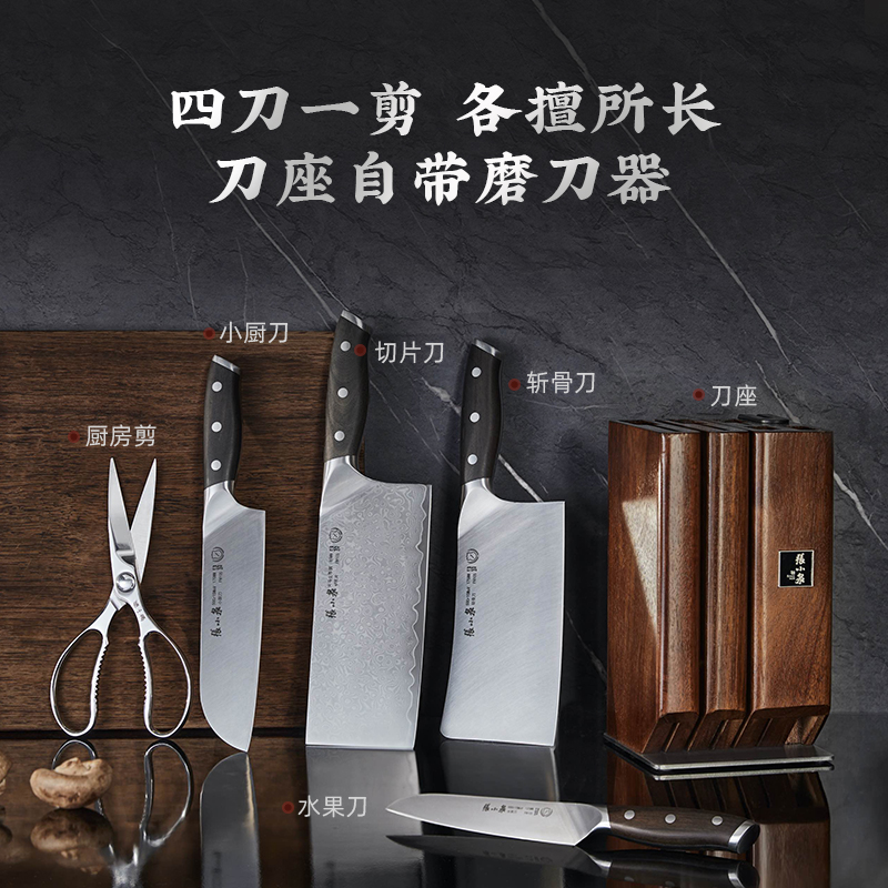 张小泉华曜刀具套装 家用大马士革钢切菜刀六件套厨房菜刀斩骨小厨