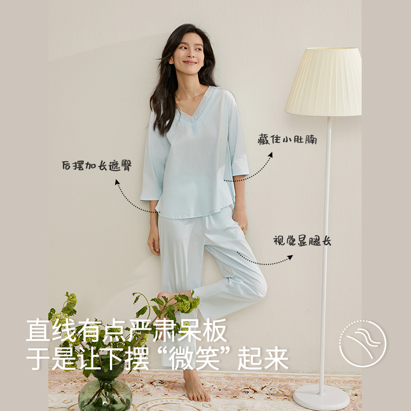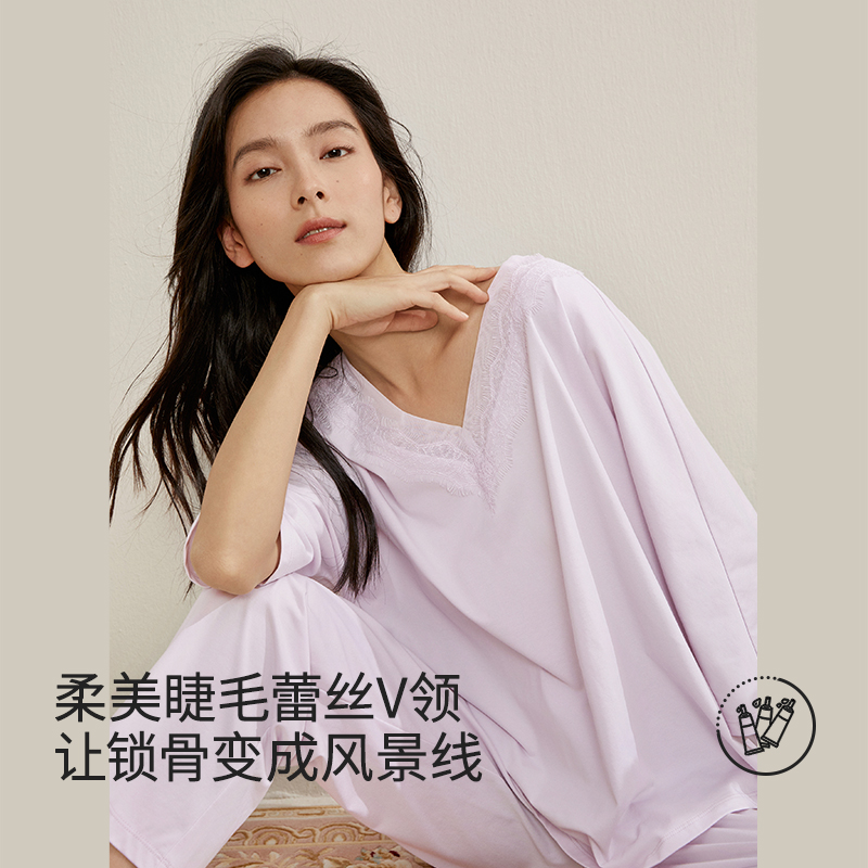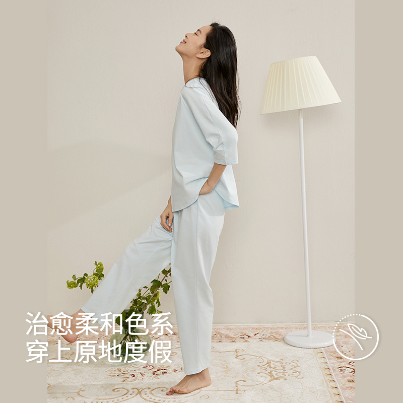 新品 音儿睡衣女款 女可外穿2025年夏季 家居服套装 精梳棉3A抗菌短袖