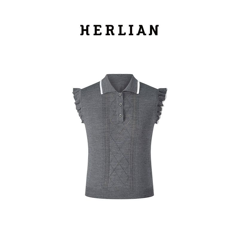 polo针织衫 HERLIAN 木耳边拼接无袖 新品 2025年春季