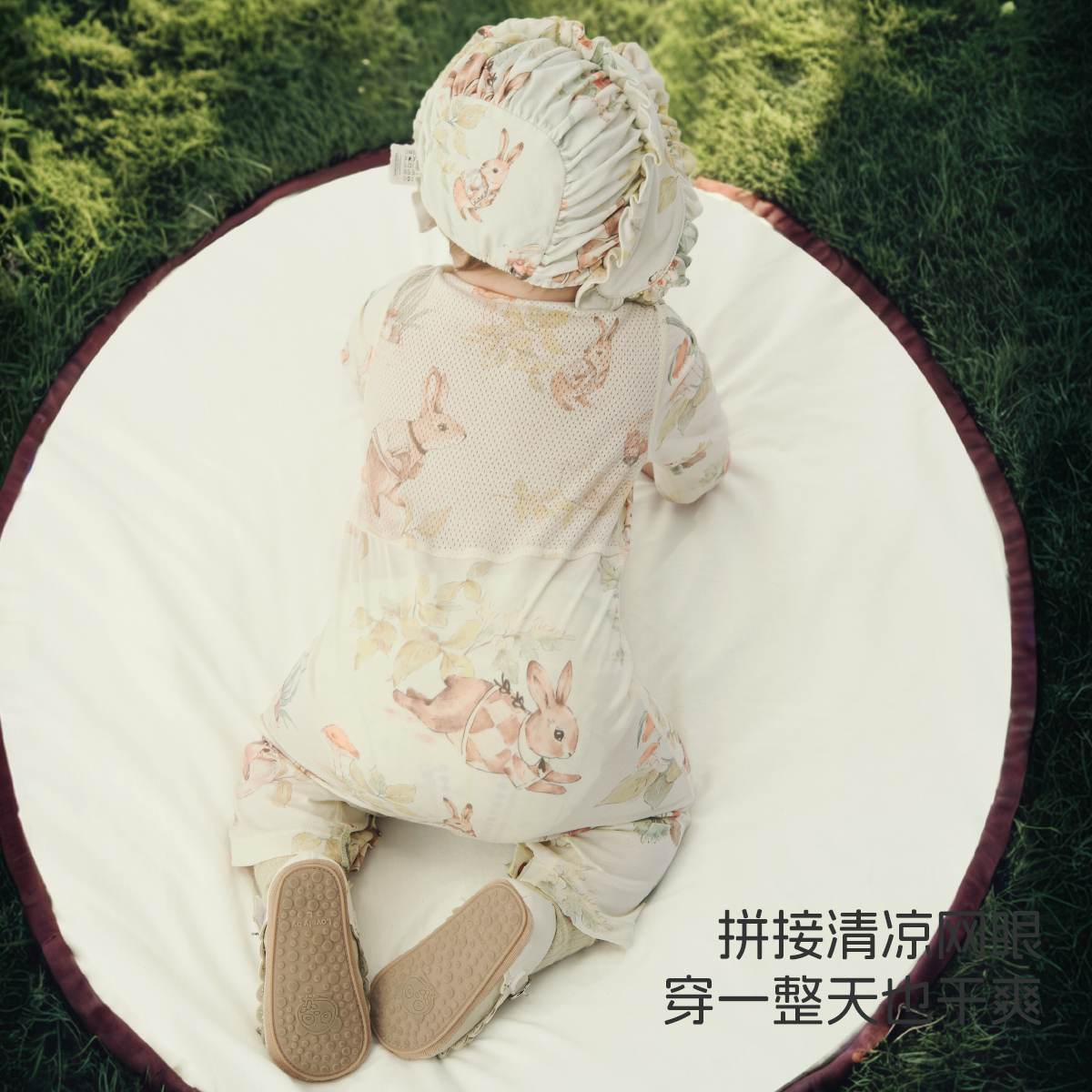 薄款 空调服夏季 aqpa爱帕婴儿连体衣长袖 宝宝衣服可爱 兔兔小魔仙