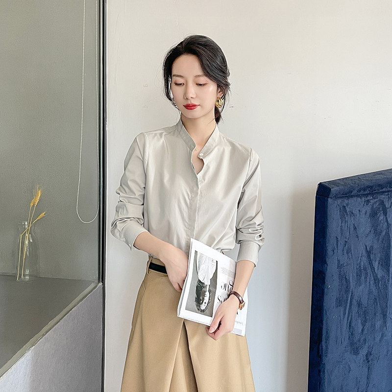 不易皱衬衣 气质ol长袖 立领灰色衬衫 女高级感轻奢厅里厅气职场新款