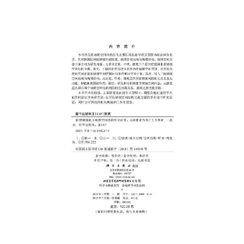 科学出版 全新正版 王飞等 ——以河北省为例 社 新型城镇化下城镇空间结构优化研究