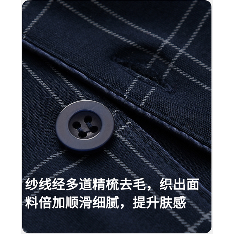 纯棉长袖 秋季 家居服可外穿薄款 加大码 质感格子睡衣男士 套装 春秋款