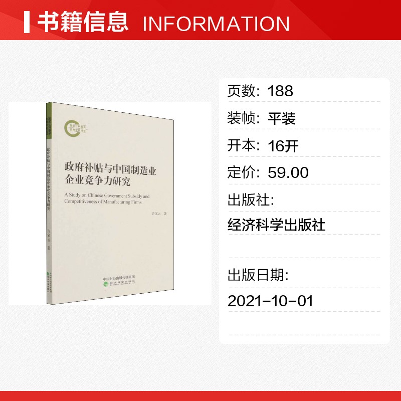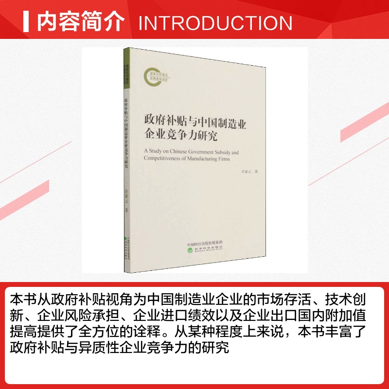 经济理论经管 励志 新华书店正版 政府补贴与中国制造业企业竞争力研究 经济科学出版 著 图书籍 社 许家云
