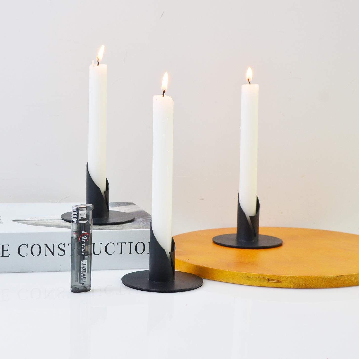 磨砂黑工艺创意铁艺烛台 斜口烛台 烛光晚餐蜡烛杯 美式 新款