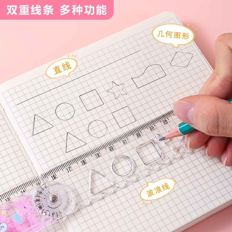 卡皮巴拉折叠流沙尺可爱折尺入油尺子小学生女生可爱风高颜值30cm折叠尺 ins少女心学习图形刻度尺多功能绘画