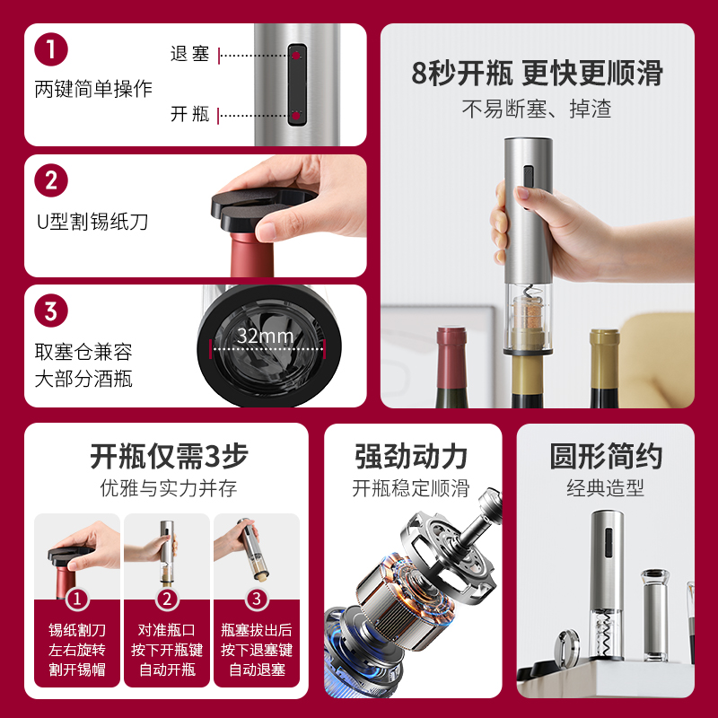 红酒开瓶器家用电动不锈钢起瓶子启瓶葡萄酒电动起酒充电款 起子