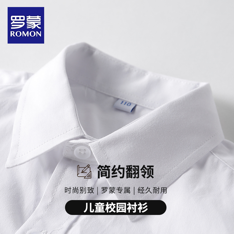 白衬衫 白色上衣儿童衬衣中大童加绒长袖 演出服 春秋款 罗蒙男童衬衫