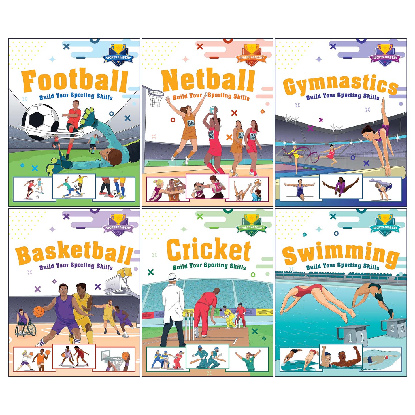 体操 Sports 趣味插画儿童绘本 英文原版 篮球 进口英语原版 体育学院系列6册 英文版 Academy 书籍 培养运动技能 游泳 足球