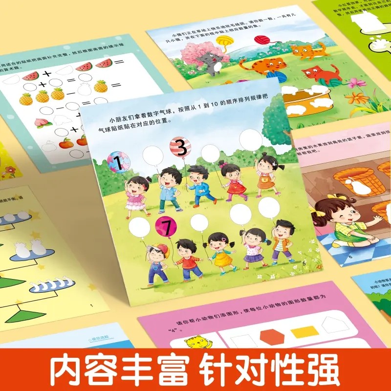 蒙氏数学贴纸书幼儿园贴贴画边玩边学数学贴纸书潜能开发 漫小驿