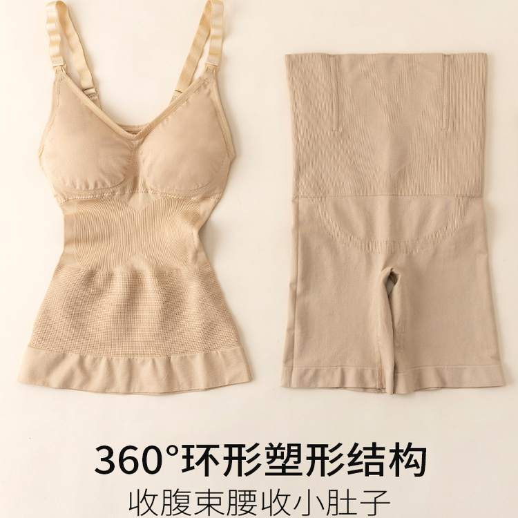 产后收腹塑身衣上半身带胸垫哺乳分体套装 上衣女强力收小肚子背心