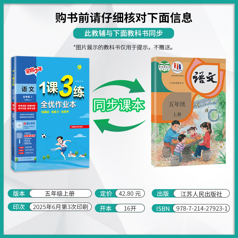 五年级上册 新版 小学语文 2025年秋季 教材同步提优阅读专题归类巩固必背知识手册全优作业本视频课 人教版 1课3练