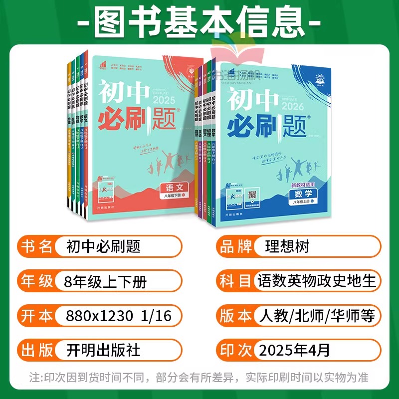2025新版 数学北师英语沪牛物理语文政治历史生物地理小四门初二八下八上初中资料 初中必刷题八年级上册下册同步练习册全套人教版