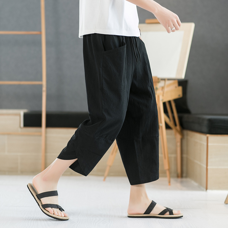 薄款 亚麻短裤 子棉麻沙滩裤 七分裤 宽松男裤 夏季 大码 男士 男休闲马裤