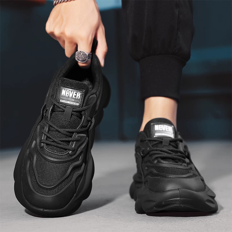 2025新款 厚底增高休闲纯黑色莆田潮鞋 夏季 男款 跑步运动鞋 老爹男鞋