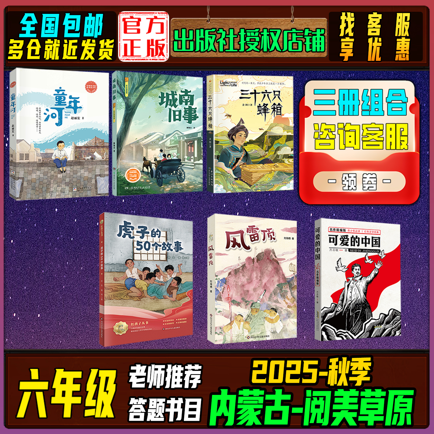 50个故事风雷顶笔墨书香 中国童年河城南旧事三十六只蜂箱虎子 2025秋季 内蒙阅美草原六年级答题打卡书目必读书籍可爱