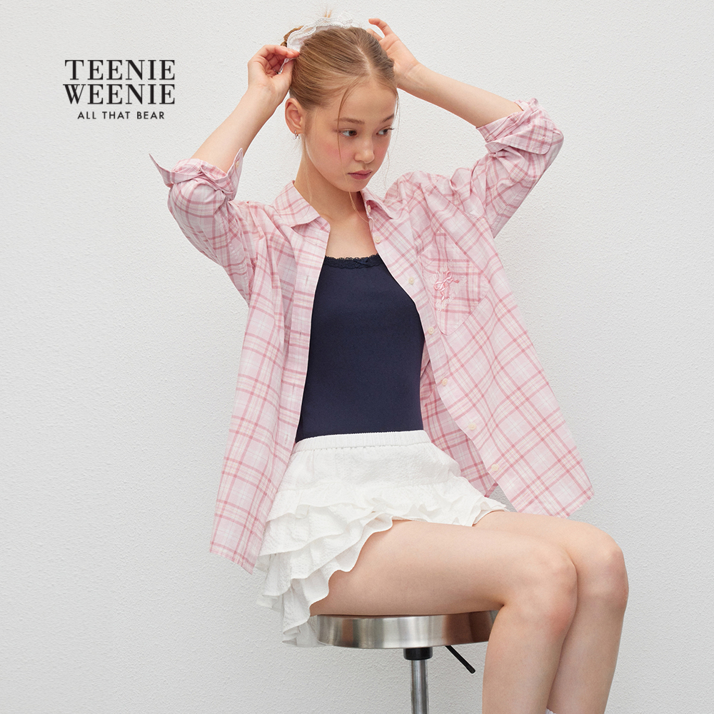 TeenieWeenie小熊女学院风复古格纹棉衬衫 格子上衣 2025年秋新款