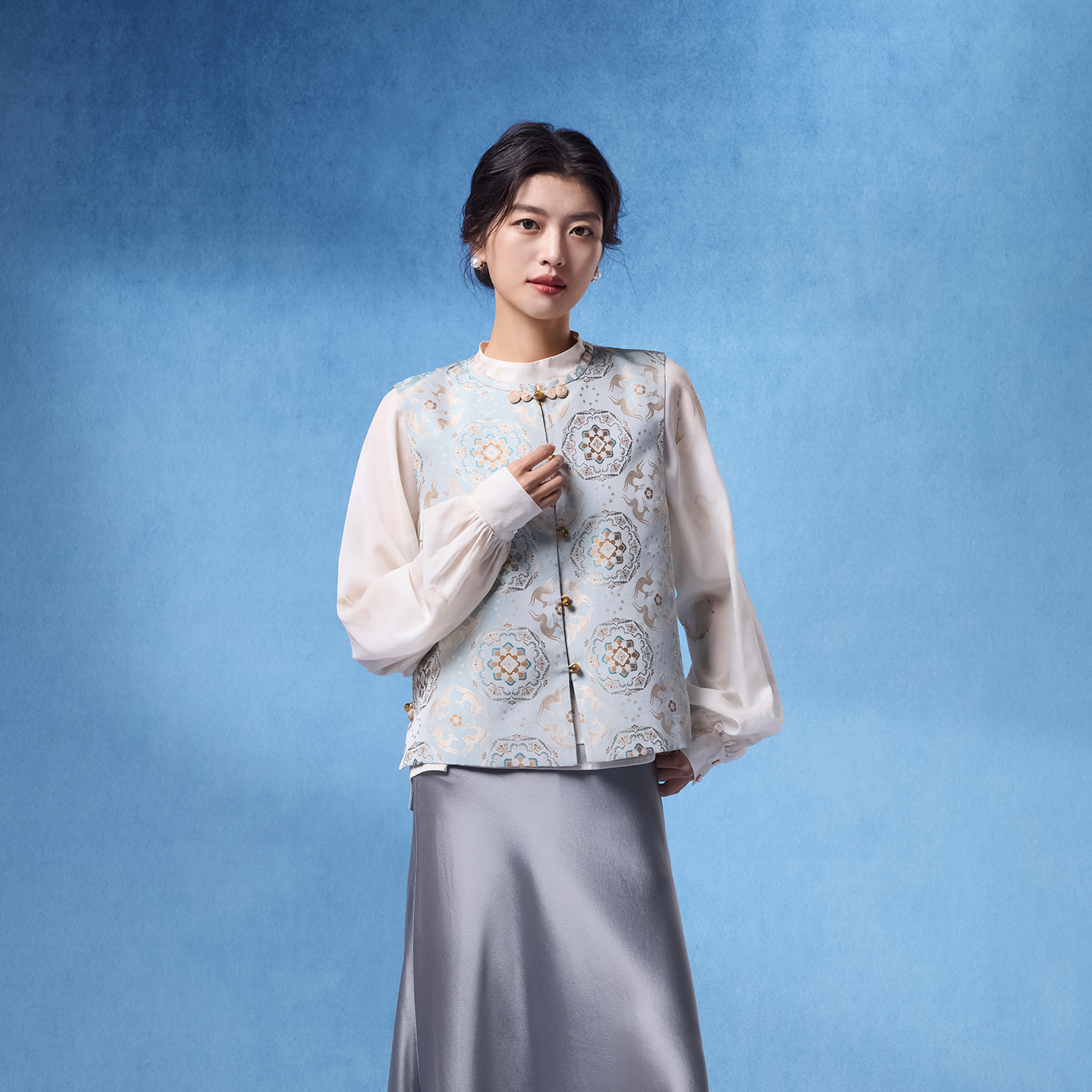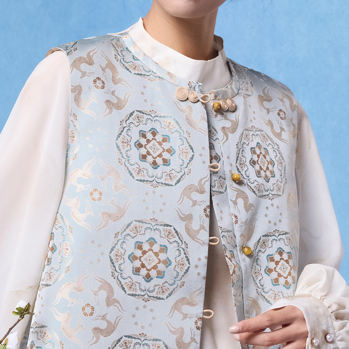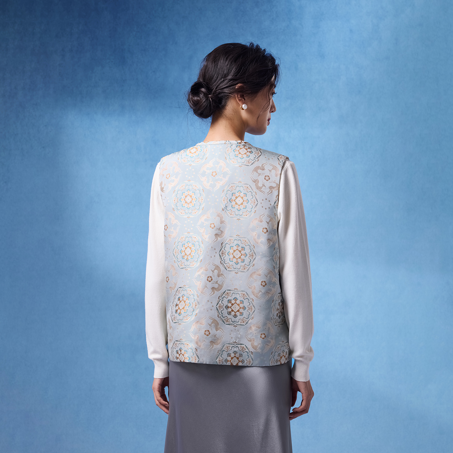 绿色立体花朵温柔风针织马甲女秋季 不规则宽松设计感毛衣背心 新款