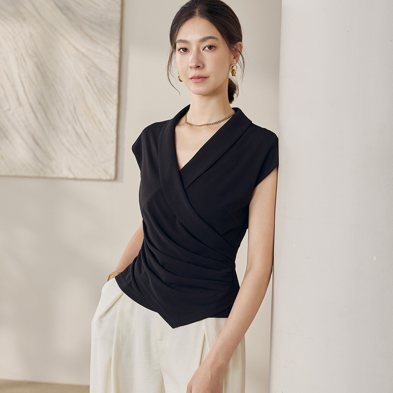 法式 女职业2025新款 V领上衣轻职场通勤白衬衣 衬衫 达佳诗白色短袖