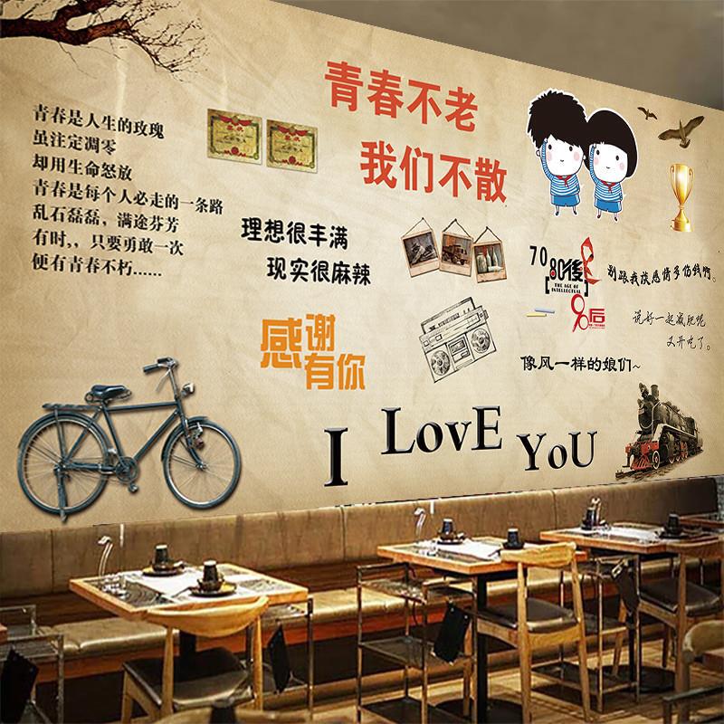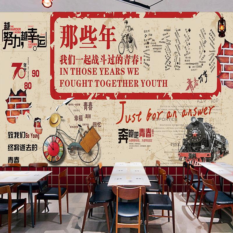 复古墙面装 饰墙贴80年代怀旧墙纸自粘烧烤店贴纸贴画仿古墙画壁画