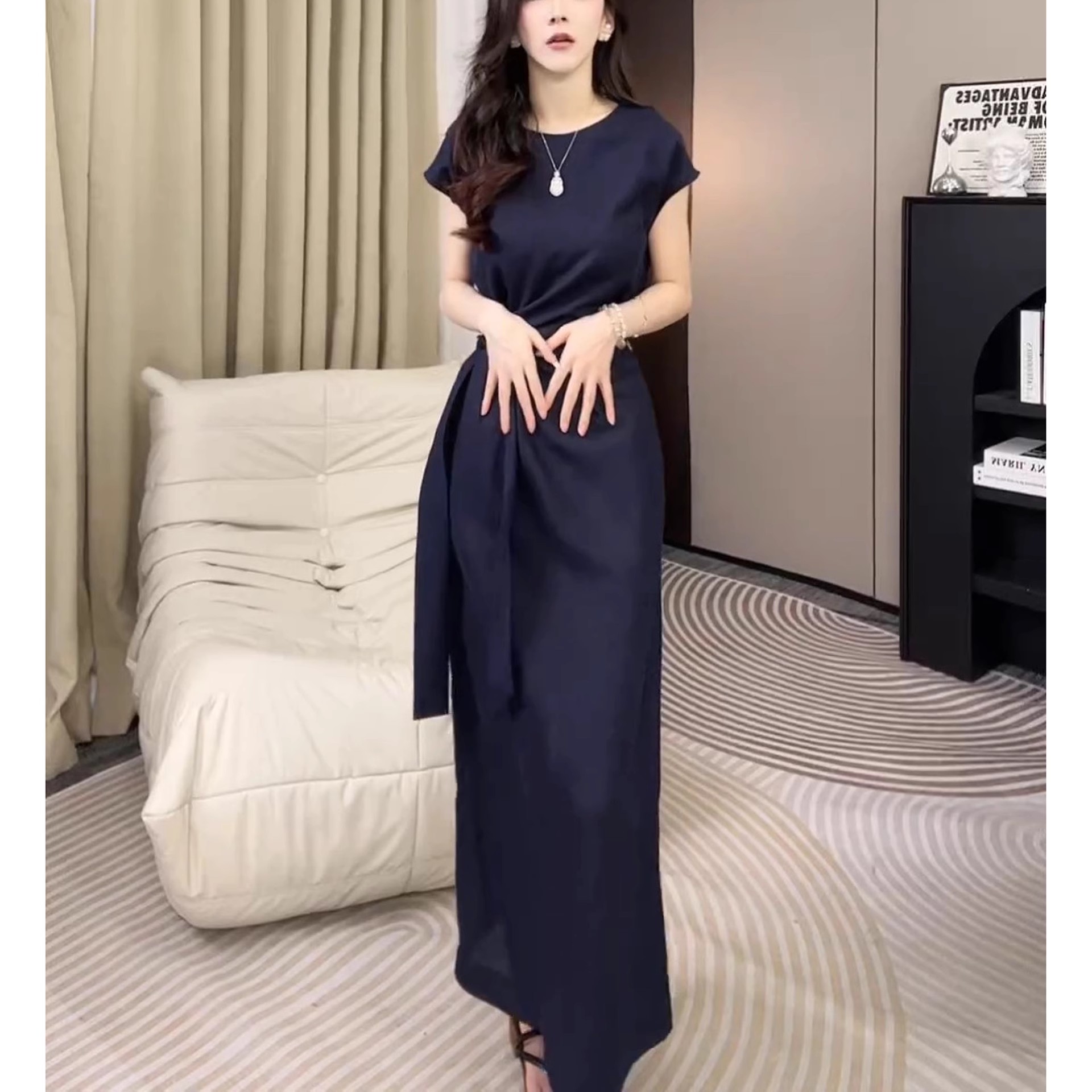长袖 场合气质显瘦裙子女式 高档长裙1050 女春秋正式 蓝色连衣裙新款