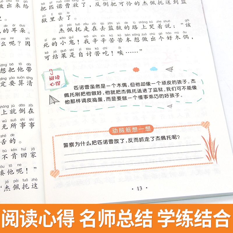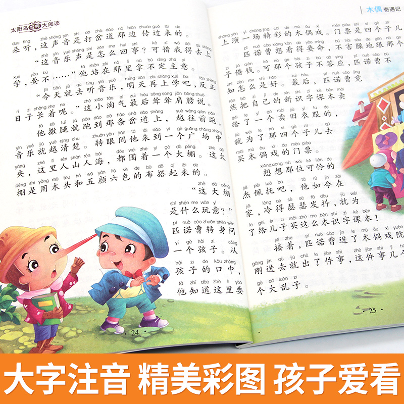 阅读课外书让孩子爱上阅读提升写作能力儿童睡前故事推荐 儿童成长经典 必读课外书籍 大阅读木偶奇遇记注音彩绘版 儿童文学太阳鸟经典