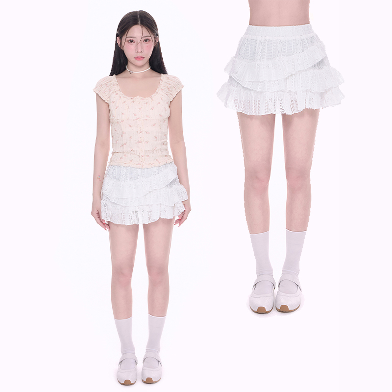 NCXK设计感蕾丝蛋糕裙A字短裙夏季 裙QZ25052 防走光裤