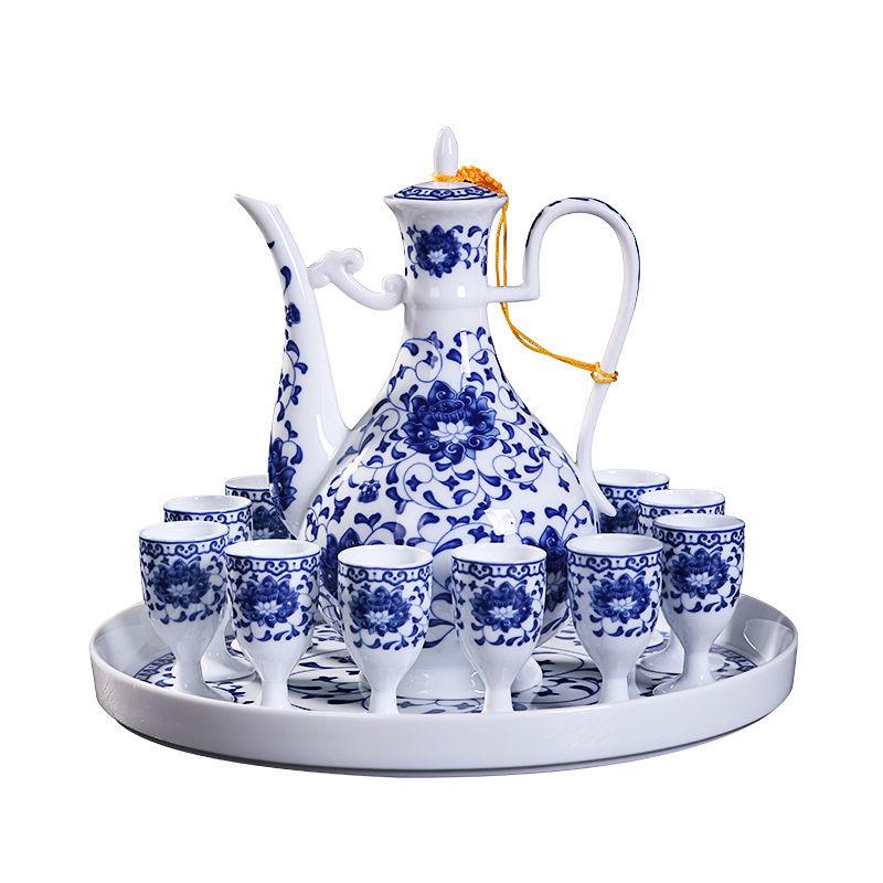 烈酒杯 白酒酒具高脚杯 酒壶套件酒盅 一斤装 景德镇陶瓷酒具套装
