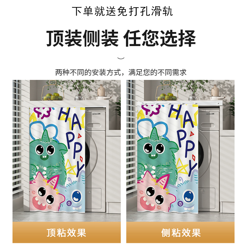 滚筒洗衣机防晒罩阳台柜子遮挡帘遮阳防尘盖布免打孔滑轨防晒帘子