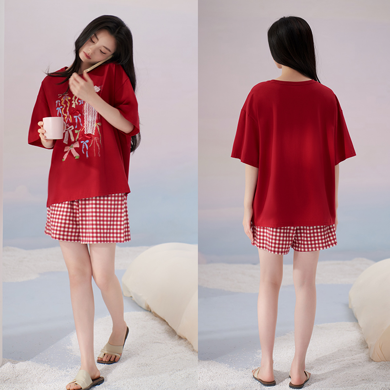 夏季 短裤 2025新款 春秋夏款 睡衣女款 少女士家居服套装 夏天纯棉短袖