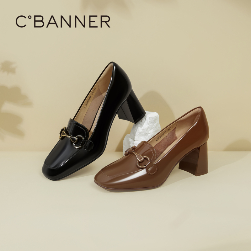 粗跟通勤真皮美拉德风正装 女气质春秋漆皮乐福鞋 高跟鞋 千百度时尚