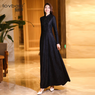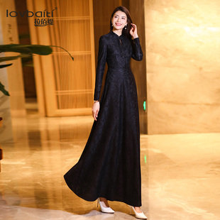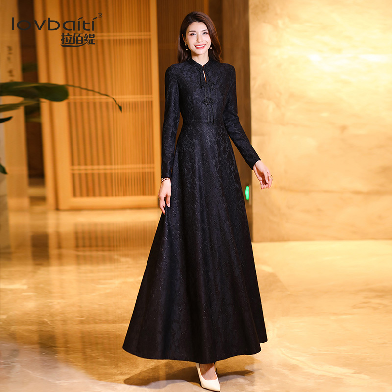 藏蓝色宴会连衣裙2025秋新款 连身裙子176 简单大方高级感穿搭长款