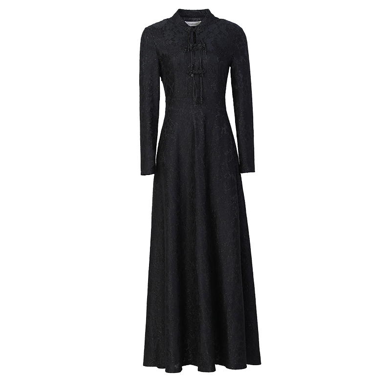 不规则辣妹高级感长裙 黑色修身 EPTISON针织连衣裙女2025秋季 新款