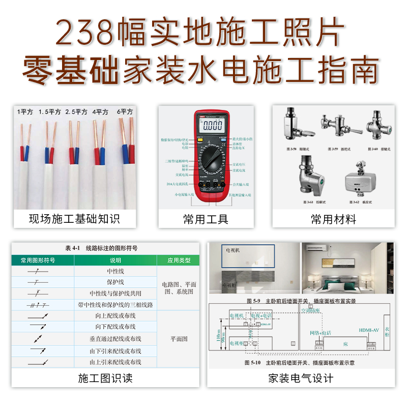 家居装 水电工现场施工全流程一本通 修水电改造施工技能水工暖工电工现场施工知识布线电路图 水电施工教程教材图解家装 零基础家装