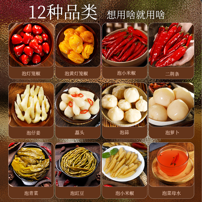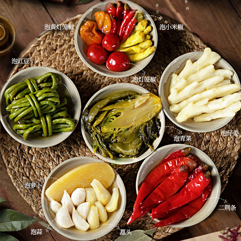 泡姜泡椒泡二荆条灯笼椒嫩仔姜泡豇豆小米辣全家福四川泡菜辣三宝