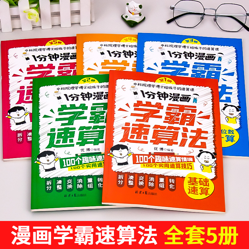 1分钟漫画学霸速算法5册小学数学原来这么有趣玩数学思维训练奥绘本公式 定律举一反三口心速算题卡一二三四五六年级同步专项天天练